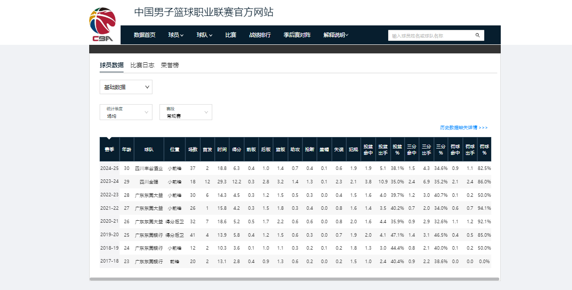 现今35岁,司职中锋,CBA生涯共征战17个赛季,先后效力八一男篮、广厦男篮,曾在24-25赛季跟随广厦男篮夺得联赛冠军,巅峰时期场均可砍14.3分9.8篮板。